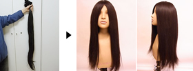 ③お客様の髪を工場へ送り、オーダーメイドのかつらを作成します。